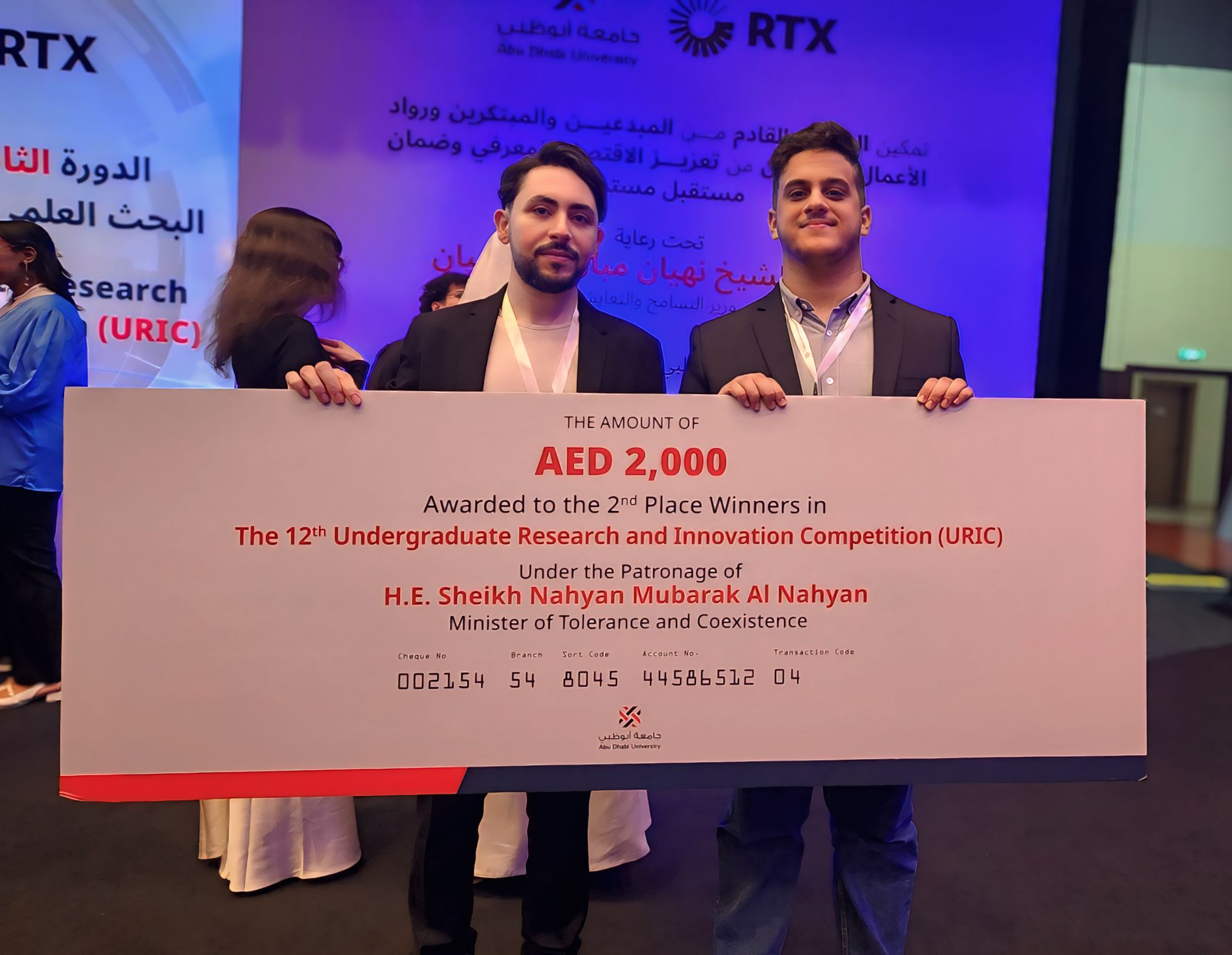 Electrical Engineering students secured Second Place in the Electrical and Electronic Engineering category at the 12th Undergraduate Research and Innovation Competition (URIC), hosted by Abu Dhabi University. Their project, “Video Magnification-Based Motor Predictive Maintenance Using Vibration Analysis,” introduces an AI-powered, non-contact method for detecting motor faults. The winning team included Murtada Ali Abdulridah, Shehab Ahmed Al-Ghawi, Abdulla Mohammed Homsieah, Ahmed Mustafa Abdelgawad, and Mohammed Mosleh Ismail, under the supervision of Prof. Kamran Arshad and Engr. Wessam Shehieb. The competition brought together 59 teams from 31 universities across 10 countries, providing a vibrant platform for innovation and cross-cultural academic exchange. |