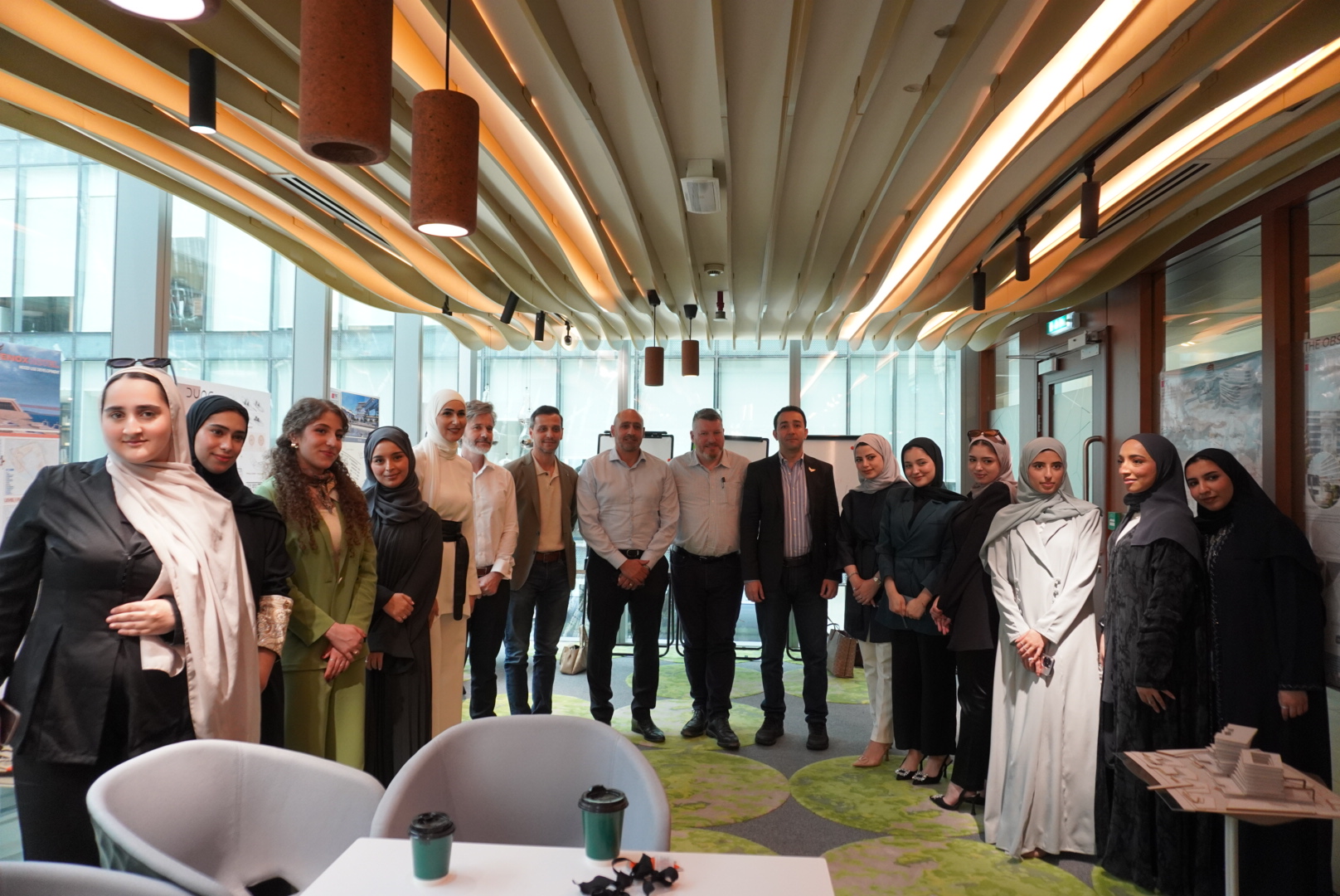 Ajman University’s College of Architecture, Art and Design concluded a Spring 2025 collaboration between third-year Architecture students and the internationally renowned firm P&T Architects and Engineers Ltd. The initiative, led by Mrs. Nashwa Shiqwarah and co-supervised by Mr. Mahmoud Shahin, engaged students in a real development brief and included a site visit to Palm Jumeirah. Students presented their final work to both faculty and industry professionals, gaining valuable practical experience. Supported by Dean Dr. Riad Saraiji, Head of Department Dr. Jihad Awad, and the P&T team, this collaboration reflects Ajman University’s strong commitment to integrating academic learning with real-world application and preparing students for professional success. |