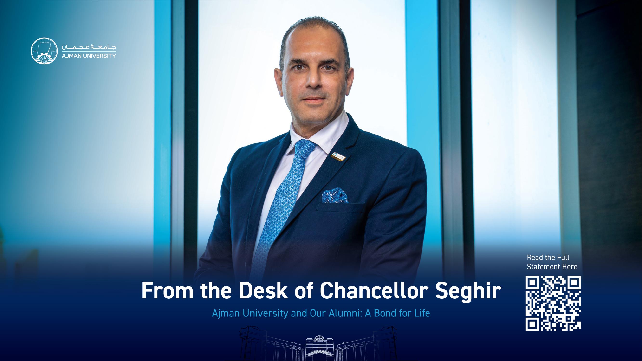 We’re pleased to share the October 2025 edition of “From the Desk of the Chancellor”, in which Dr. Karim Seghir celebrates the power of Ajman University’s alumni to inspire, lead, and transform communities worldwide. In this month’s message, Dr. Seghir highlights AU’s global impact, the extraordinary achievements of alumni across 102 countries, and the upcoming first-ever Alumni Conference this November—a milestone that will connect past, present, and future trailblazers. He also reflects on how AU alumni continue to shape industries, drive social impact, and carry forward the “Make It Happen” spirit, reinforcing AU’s mission to empower the next generation of leaders and changemakers. |