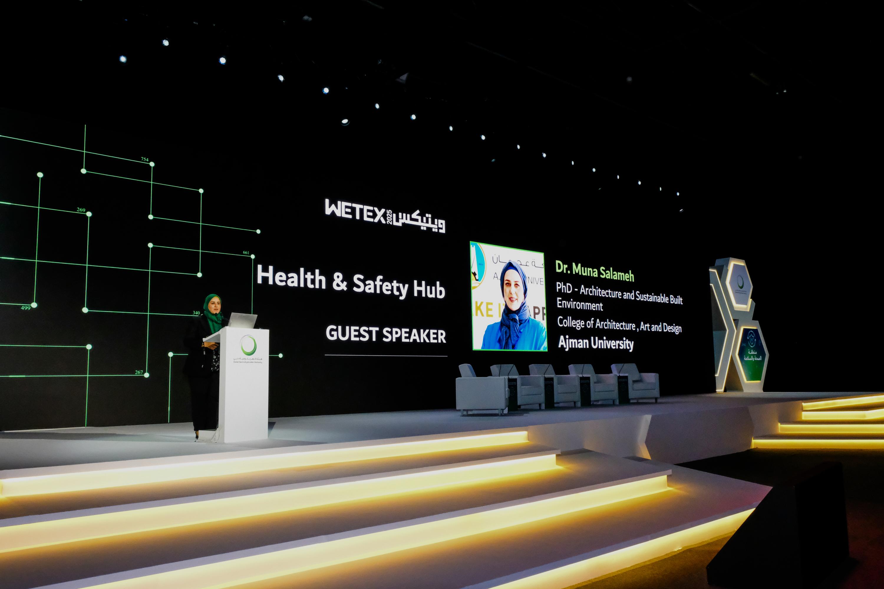 Dr. Muna Salameh from the College of Architecture, Art & Design participated as a distinguished speaker at DEWA’s Health & Safety Hub, held alongside WETEX 2025 in collaboration with Bureau Veritas. Under the theme “Innovation in Health, Safety, and Wellbeing,” Dr. Salameh discussed how architectural design can enhance safety, health, and resilience in built environments. |
