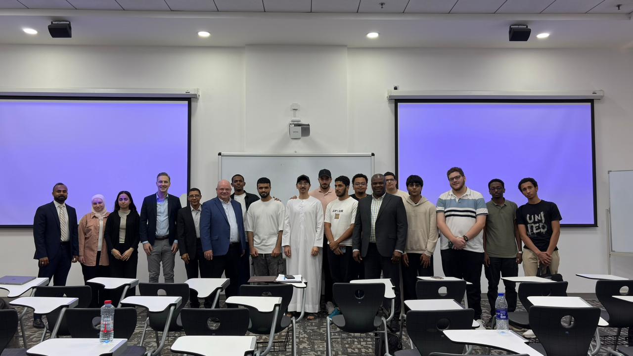 The College of Business Administration hosted an interactive session titled “The Power of Professional Certifications in Finance and Accounting,” featuring Mr. Brian Hock, Founder and President of Hock International. The session explored how global certifications such as CMA, CPA, CIA, and IFRS enhance career readiness and bridge the gap between academia and industry. Mr. Hock also discussed the impact of AI in finance and accounting, emphasizing its role as a supportive tool. As part of Hock International’s educational commitment, five scholarships were awarded to Ajman University students, and Mr. Hock personally presented an IFRS Certificate of Completion to senior student Shaker Masoud in recognition of his achievement. |