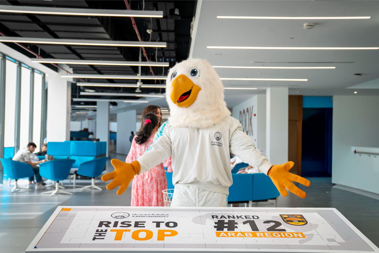 Ajman University students celebrated the university’s rise to 12th place in the QS Arab Region Rankings 2026 with a creative puzzle display symbolizing unity and shared achievement. Each piece represented AU’s collective spirit of excellence and progress. |
