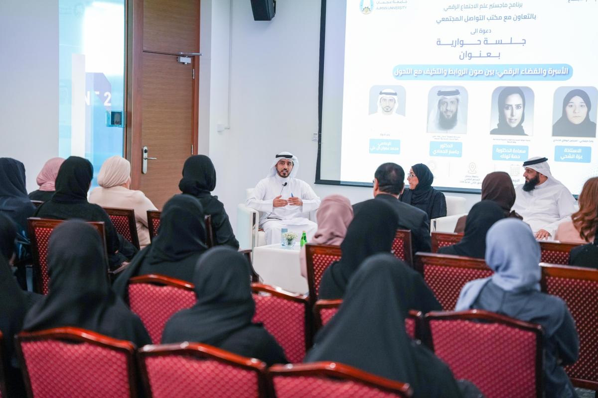 The Department of Sociology at the College of Humanities and Sciences, in collaboration with the Office of Community Engagement, held a roundtable titled “Family and the Digital Sphere: Between Preserving Bonds and Adapting to Change” as part of the Family Transformations in Digital Society course (Master of Digital Sociology). The session gathered H.E. Hessa Tahlak, Azza Al Shehhi, Dr. Jasem Al Hammadi, and media presenter Mohammed Omran Al Ali, who moderated the discussion. The speakers explored how digital transformation influences family roles, values, and cohesion, and how UAE policies support family and child protection in the digital era. The event was organized by Master’s students under the supervision of Dr. Soumaya Abdellatif, Head of the Sociology Department. |