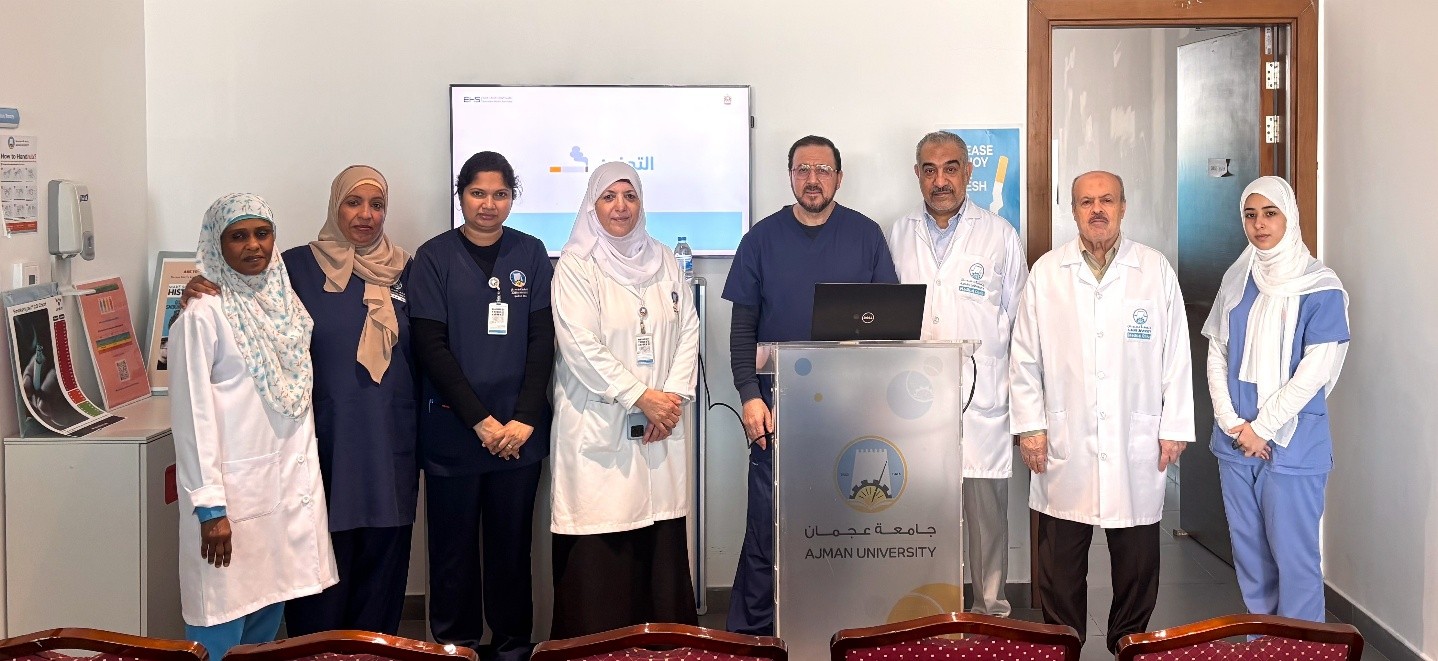 The Office of Medical Services, in collaboration with Emirates Health Services – Al Hamidiya Medical Centre, launched the Quit Smoking Challenge Campaign to support community members in adopting healthier, smoke-free lifestyles. The campaign began with an awareness session delivered by Dr. Samer Mohieldin Nehlawi at the Medical Clinic, where participants were encouraged to take a Breath Carbon Monoxide Test to assess their smoking levels and track progress. |