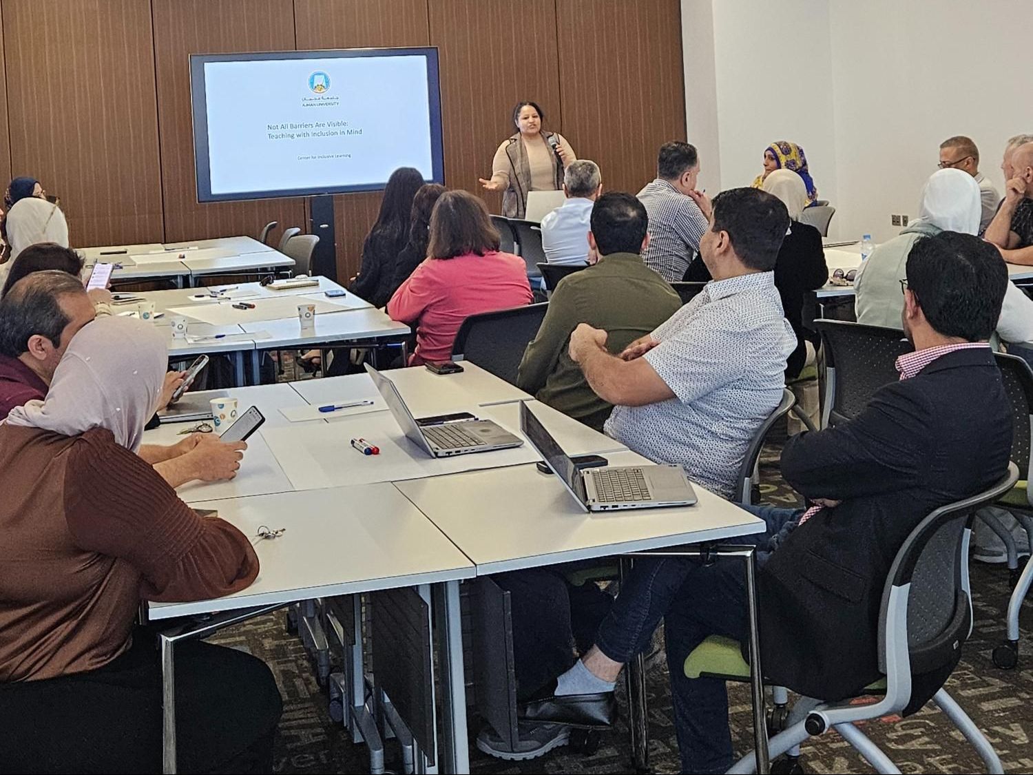 The Center for Inclusive Learning in collaboration with the Teaching and Learning Center organized a workshop titled “Not All Barriers Are Visible: Teaching with Inclusion in Mind”. The session was delivered to faculty members by Dr. Dalia Bedewy, Associate Professor at the College of Humanities and Sciences and Director of the Center for Inclusive Learning; Samah Abusniemah, Psychological Counsellor; and Dr. Elham Yahia, Assistant Professor at the College of Humanities and Sciences. The workshop focused on raising awareness of invisible barriers that may impact students’ learning experiences and emphasized inclusive teaching strategies, accessible course design, and approaches that support diverse learning needs. |
