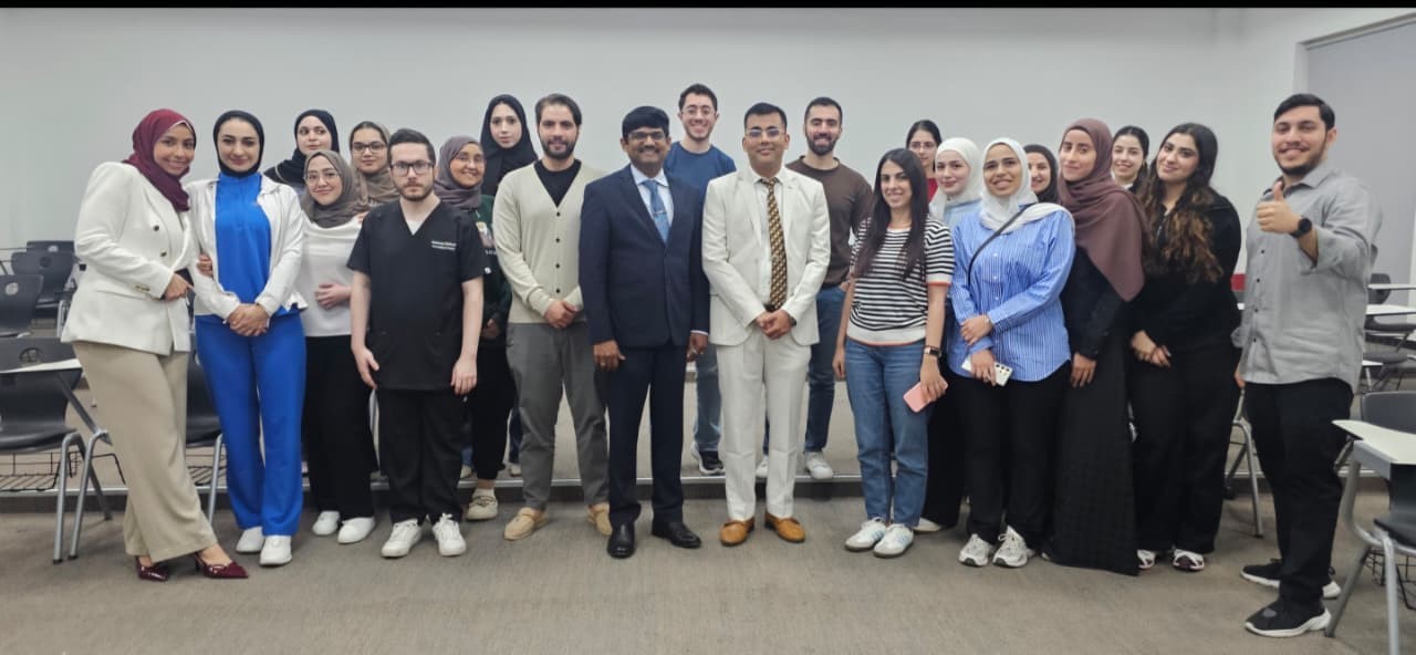 The College of Dentistry hosted a guest lecture by Dr. Sherif Mohamed Farouk Helal, who holds a doctoral degree from the University Clinic of Hamburg, Germany, and brings over four decades of experience in pediatric and preventive dentistry and dental public health. During the lecture, “Fluoride Alternatives,” students explored current challenges in caries prevention and learned about modern preventive approaches. The session strengthened their clinical understanding, enhanced their critical thinking, and supported their preparation for evidence-based practice in pediatric dentistry. |