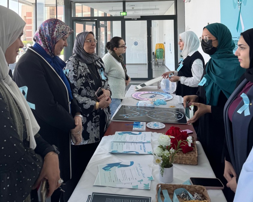 In recognition of Cervical Cancer Awareness Month, female students participated in an on-campus awareness initiative organized by the Health and Wellness Club at the College of Pharmacy and Health Sciences under the supervision of Dr. Nihal Ibrahim, Associate Professor at the College of Pharmacy and Health Sciences. The initiative encouraged students to learn about prevention, pursue early screening, and make informed decisions about their health. |